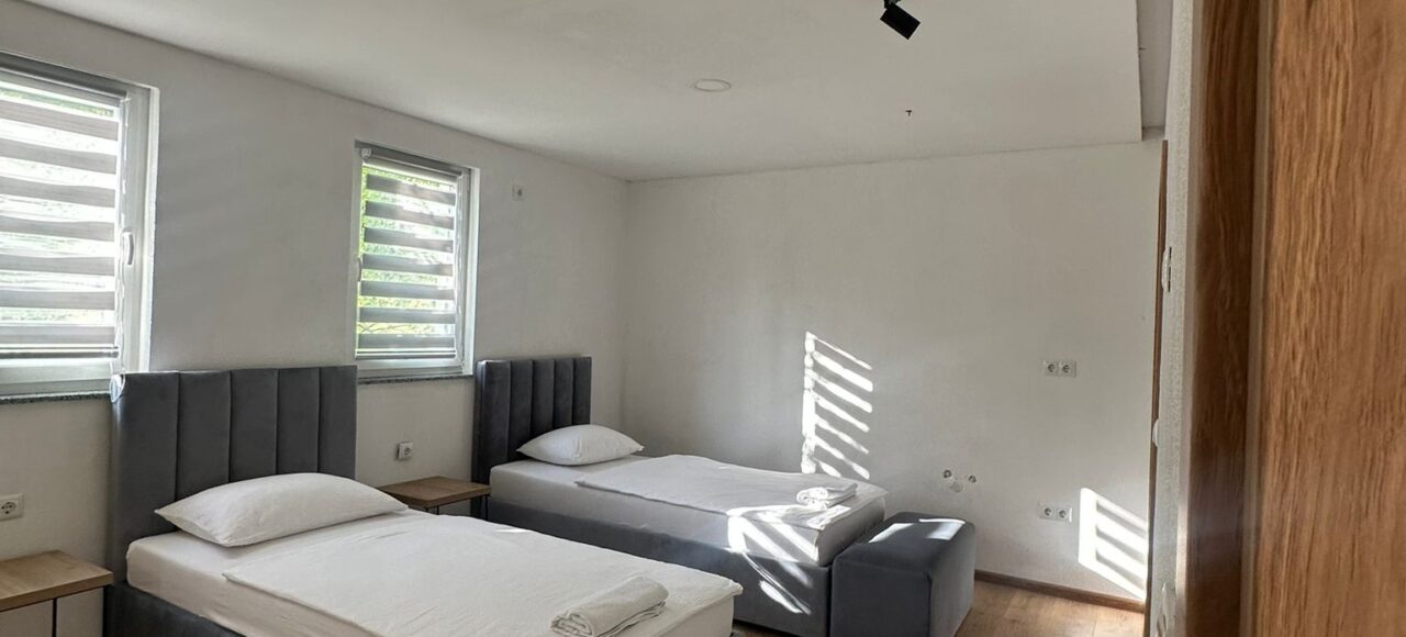 5 soba je apartmanskog tipa građenihu tradicionalno-modernom stilu sa približno istim korisnim prostorom od 35m2 u okviru kojih se nalazi soba kupatilo predsoblje i terase.
